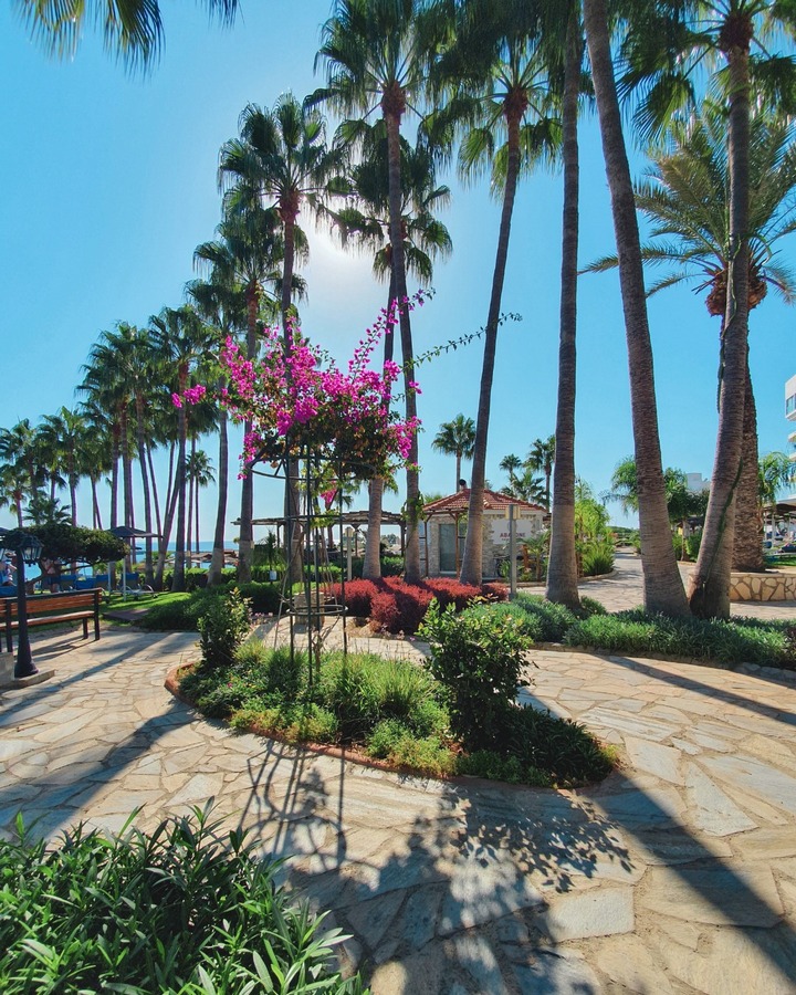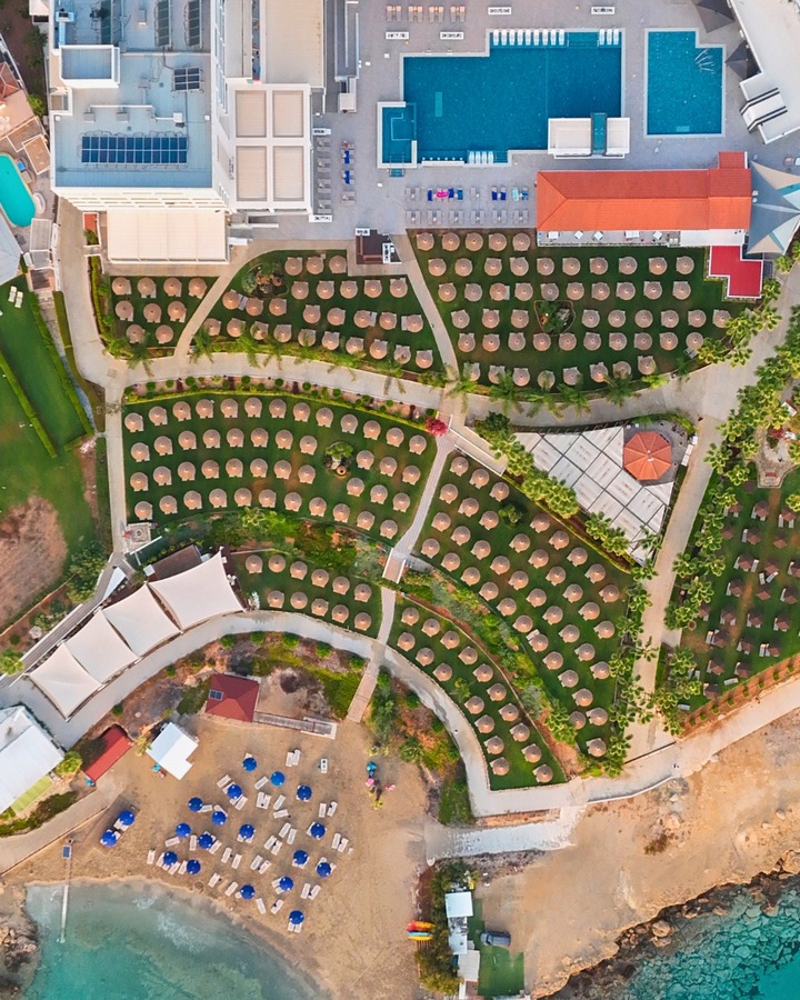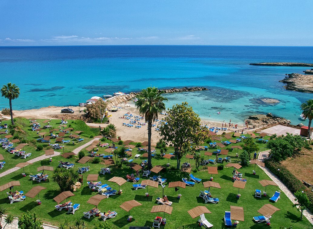 The hotel is located on the southeast coast of Cyprus in the town of Protaras. The complex is surrounded by palm trees, extensive lawns and gardens, while the resort center is within walking distance. There are also shops, restaurants, bars, and a number of very interesting attractions nearby (Fig Tree Bay beach, Cape Greco National Park, coastal promenade, Konnos Bay, Cyclops Caves). The hotel offers various types of luxuriously equipped rooms, several restaurants and bars, a terrace cafe, an internet corner, a children’s playroom, tennis lessons, horse riding, diving courses, bike rental or boat trips. In addition, there are various swimming pools and a wellness center with a gym.