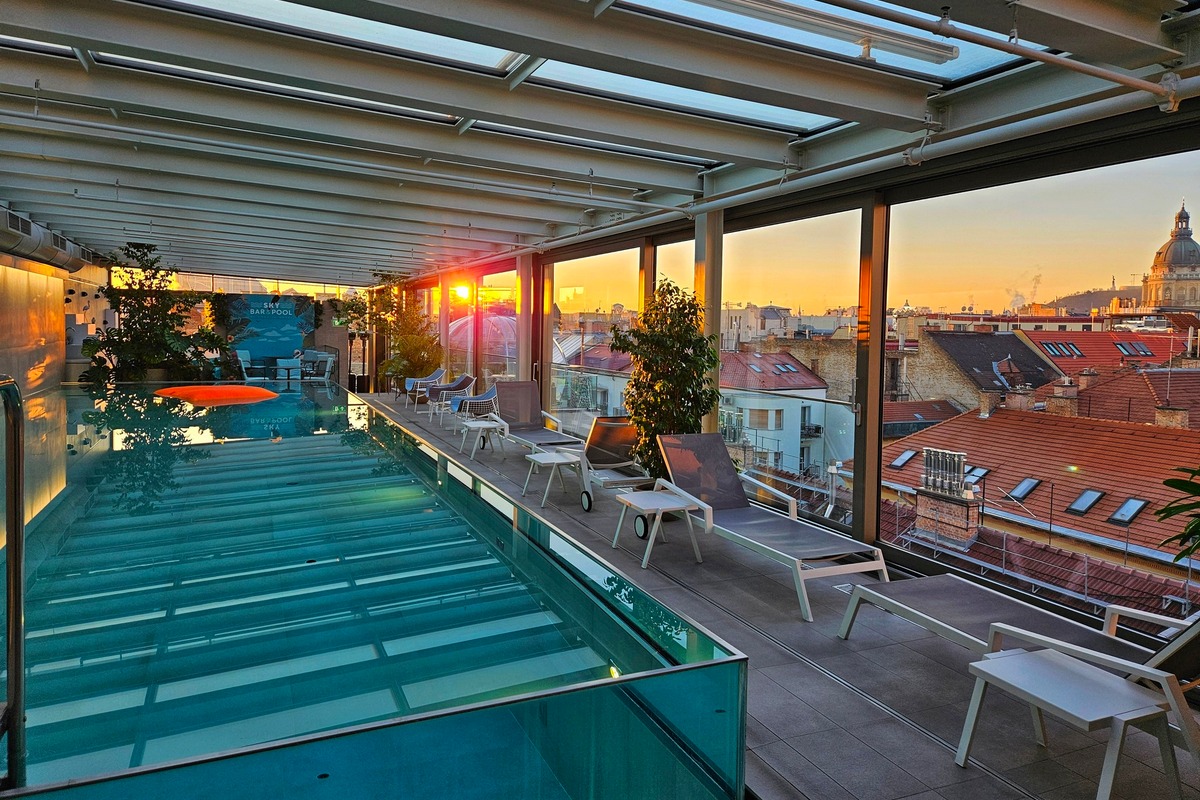 The property operates as an adults-only boutique hotel (14 plus) and is located within walking distance of the city center of Budapest. The popular Aquaworld water park is about 13 km away, while Margaret Island (Margit sziget in Hungarian) is about 6 km away. The hotel offers luxuriously designed, soundproofed and spacious rooms. The experience can be enhanced by the hotel’s rooftop pool, accompanied by the sparkling lights of Budapest. It is also possible to book a seat at the rooftop bar, from which you can enjoy the view of the illuminated city and the romance of the surrounding buildings.