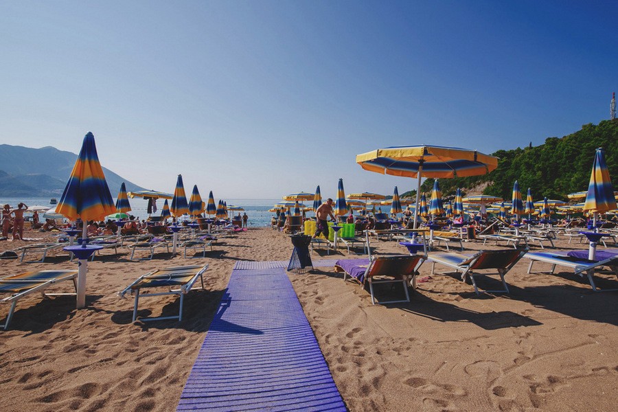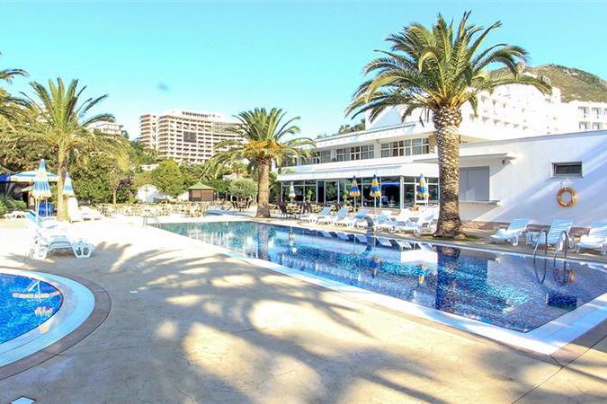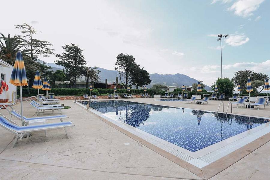Surrounded by forest and beautiful mountains, the resort is located in Bečići, in a picturesque bay with clear sea water. The historic center of the resort town of Budva is accessible via the seaside promenade, as are the nearest restaurants and nightclubs (approximately 2 km away). The hotel is open from April to October, and its guests can enjoy the sea and sun on a private beach with free sun loungers and parasols. Visitors also have access to bars and restaurants, animation programs for all ages, a children’s playroom, swimming pools, a gym and a wellness center.