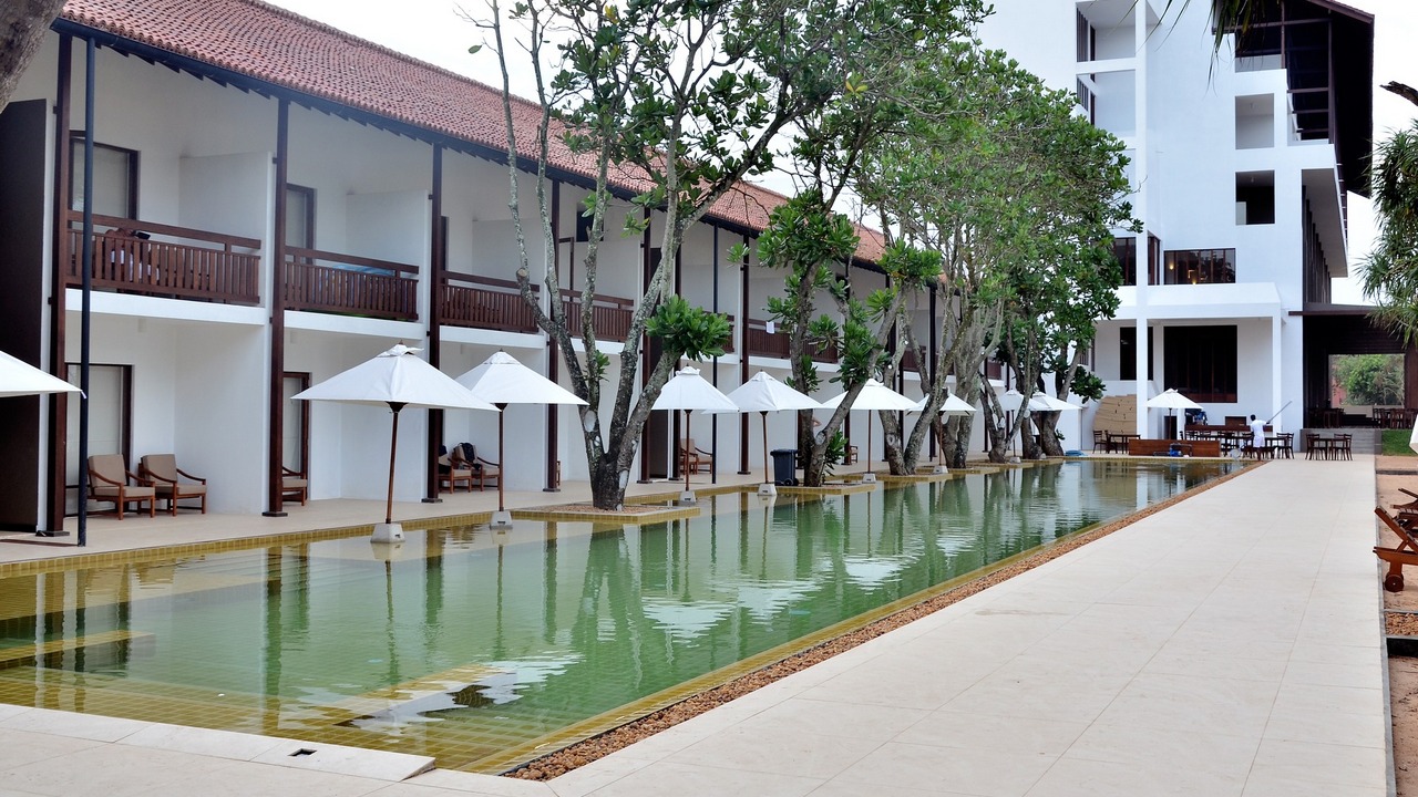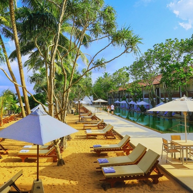 The spacious five-story resort is located on the shores of a sleepy fishing village, on a secluded stretch of Induruwa beach on the southern coast of Sri Lanka. The hotel has beautiful views of the vast Indian Ocean. The facility operates its own restaurant, and guests can also use, for example, beach volleyball, darts, or a fitness center. The hotel also operates a beach, swimming pool and wellness with a variety of treatments.
