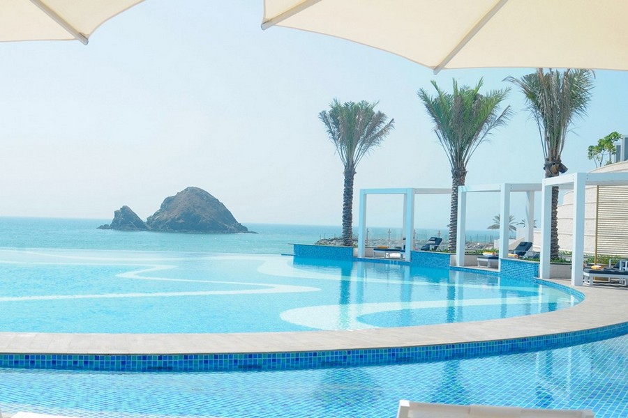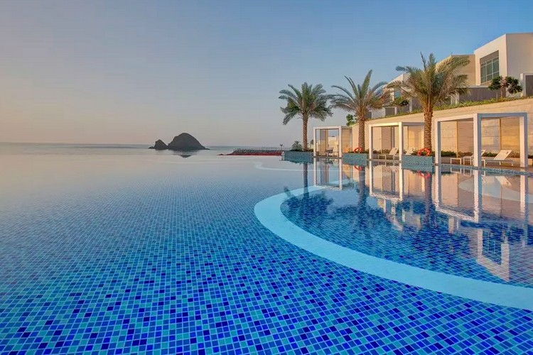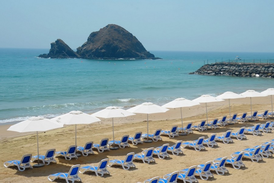 The resort is located in the luxury holiday destination Al Aqah Beach, about 150 km from the metropolis of Dubai. Overall, it is a peaceful place with a view of the sea, and with the beautiful Hajar mountains in the background. However, there is certainly no shortage of sports and cultural activities here. The hotel itself has a private beach, an infinity pool, a children’s zone, a spa and wellness center, a state-of-the-art fitness center, exciting water sports, multi-cuisine restaurants, bars and a ballroom.