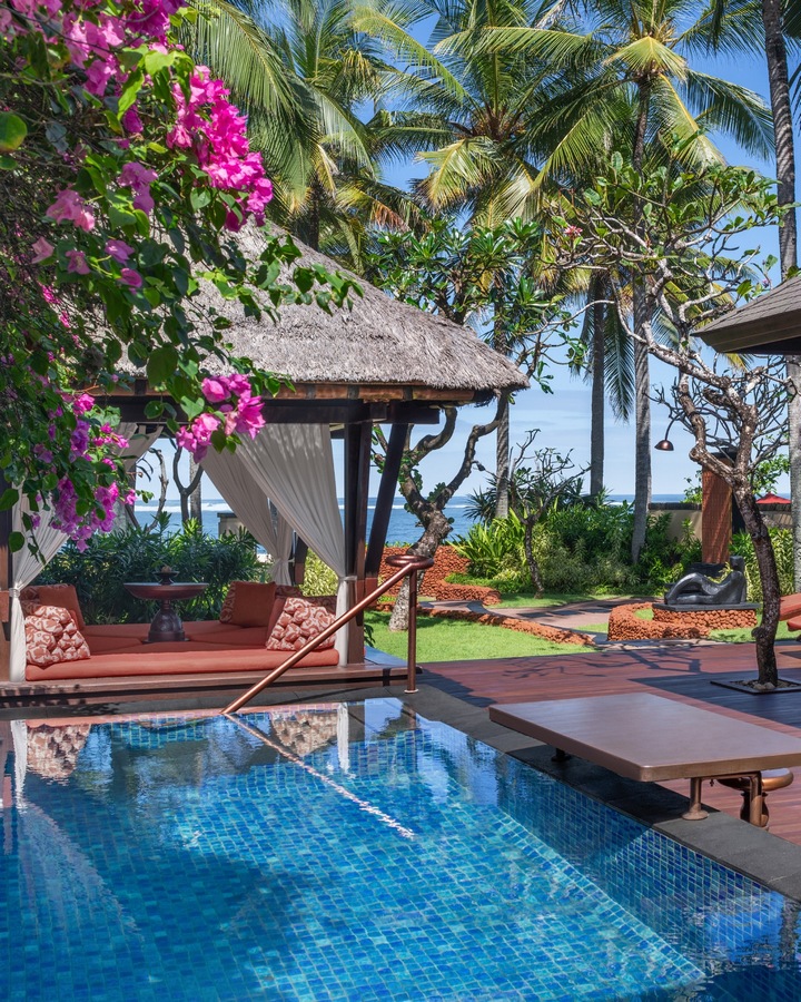 The resort is located on the tranquil yet spectacular Nusa Dua beach on the southern tip of Bali. The seemingly endless stretch of Nusa Dua beach is made up of fine sand, and in its wider area there are various restaurants, bars or sports facilities (including golf courses). The hotel rooms, suites and villas include an outdoor space and offer views of the garden, pool or beach (villas and residences have direct beach access). The resort includes several unique restaurants and bars that bring exclusive culinary experiences. The hotel also offers airport transfers, bicycle rental, a children’s center, a games room, a fitness center, a pool or a spa.