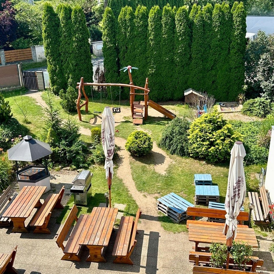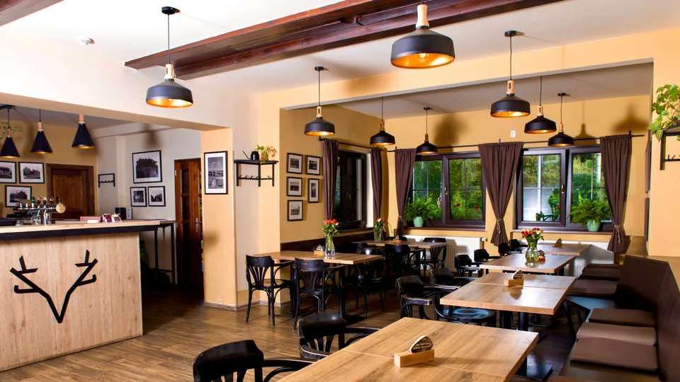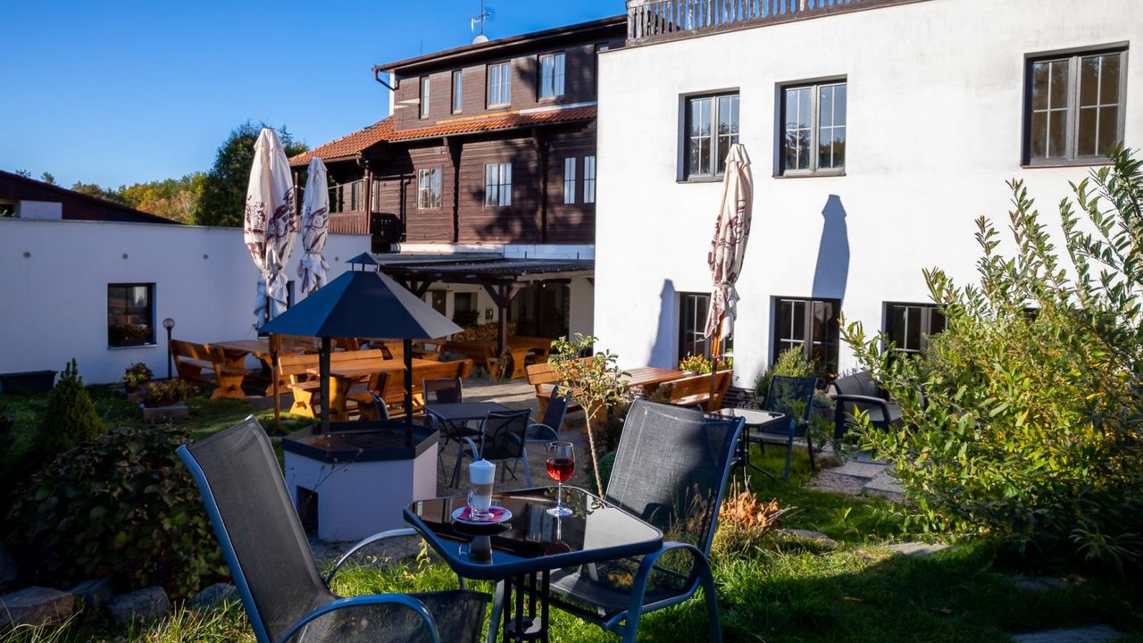 The Valnovka wellness resort is located in Kamenice u Prahy, 8 km south of the borders of Prague, and about 25 km southeast of its center. The Aquapalace water park is located about 20 km away. In the vicinity of the hotel there are the Ládví lookout tower, Kamenická linová alej, Panská skála and Hornopožárský les. In the neighboring villages you can also find the Military Technical Museum, Týnec nad Sázavou Castle or the Velké Popovice Brewery. The hotel gives guests the option of staying in a historic log cabin or in the hotel itself. There you can also use the restaurant, garden with barbecue, fitness room, exercise programs and sauna with swimming pool.